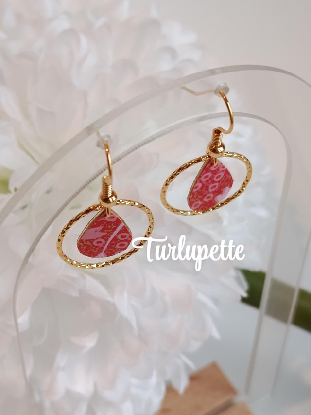 ✨Boucles d’oreilles uniques qui allient élégance et raffinement. Réalisées à la main à partir de papier japonais verni . Un anneau en plaqué or 18 carats pour agrémenté se modèle.