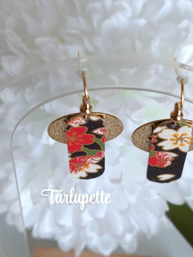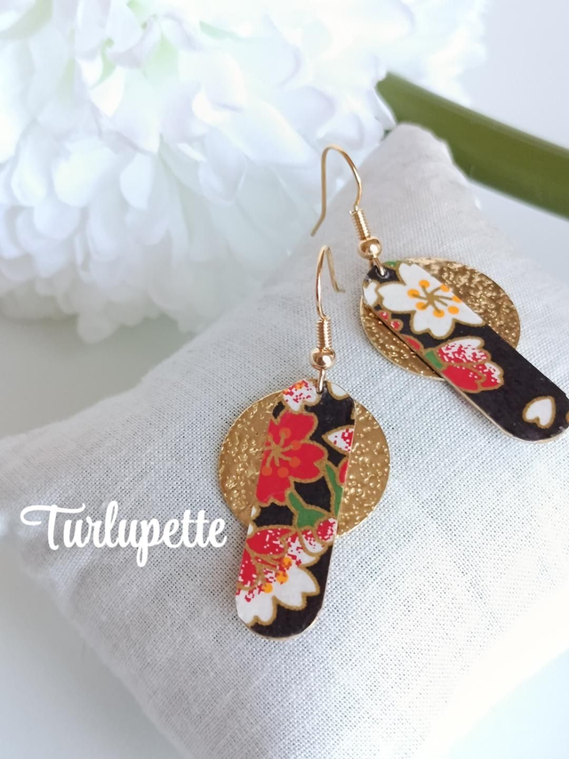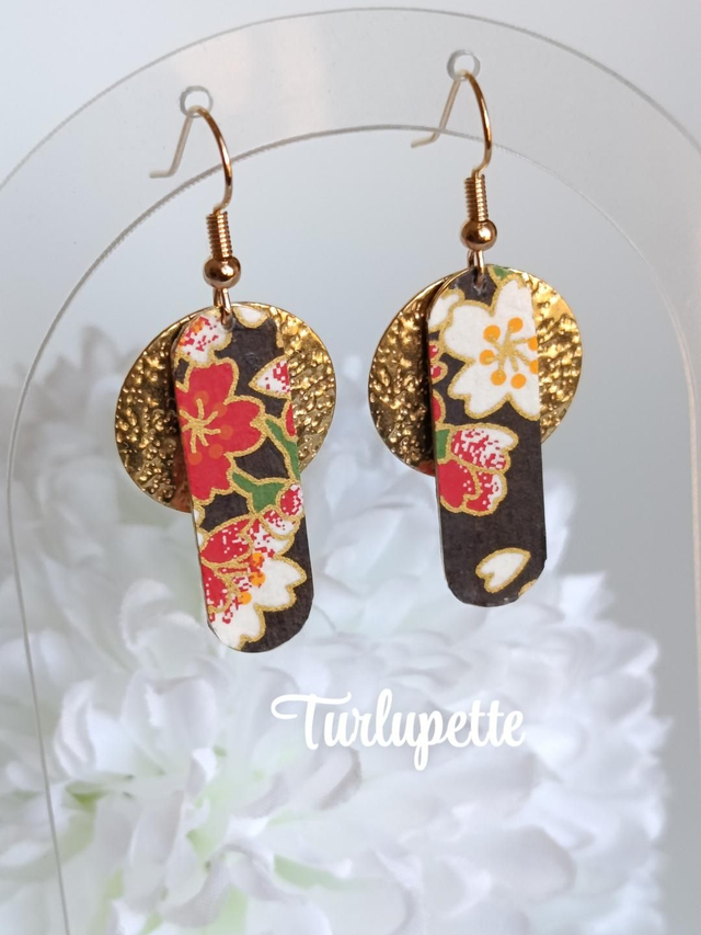 ✨Boucles d’oreilles uniques qui allient élégance et raffinement. Réalisées à la main à partir de papier japonais "collection Hanae" verni .