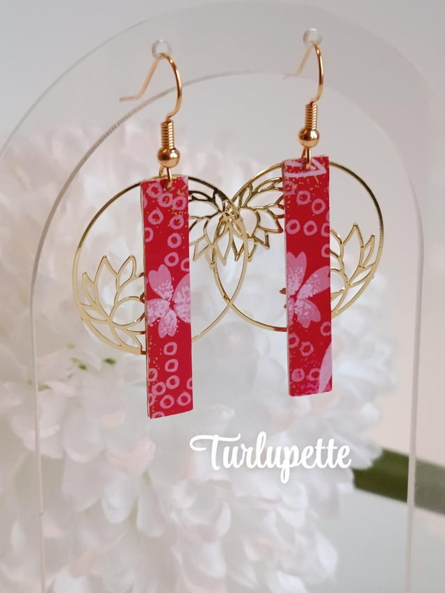 ✨Boucles d’oreilles uniques qui allient élégance et raffinement. Réalisées à la main à partir de papier japonais verni . Une estampe en acier inoxydable pour agrémenté se modèle.