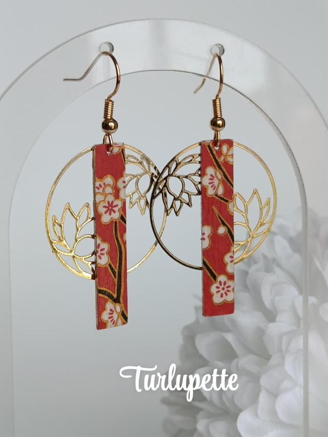 ✨Boucles d’oreilles uniques qui allient élégance et raffinement. Réalisées à la main à partir de papier japonais verni . Une estampe en acier inoxydable pour agrémenté se modèle.