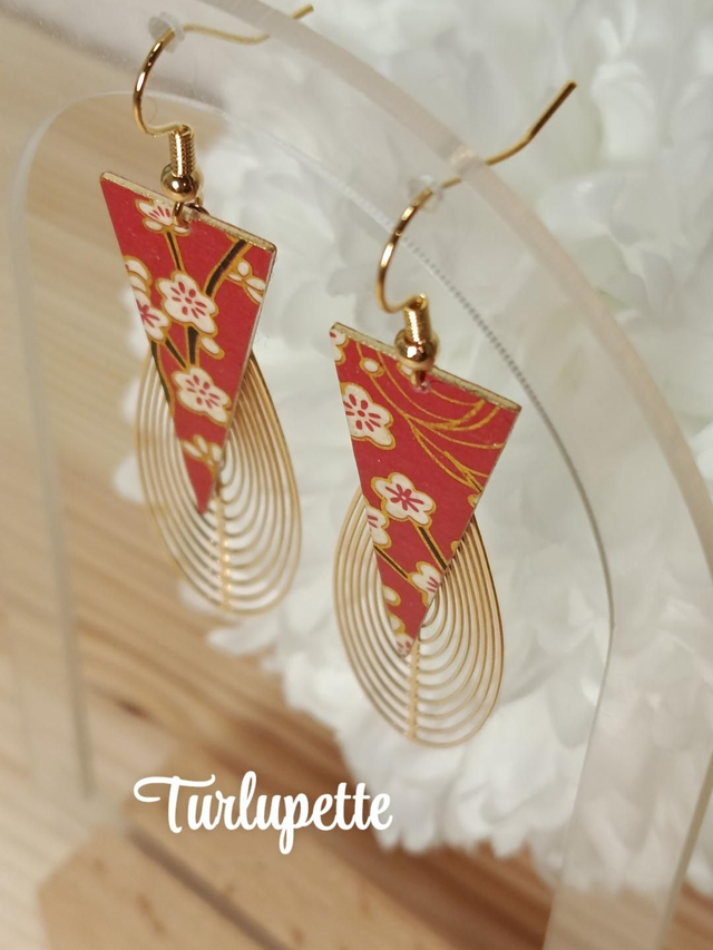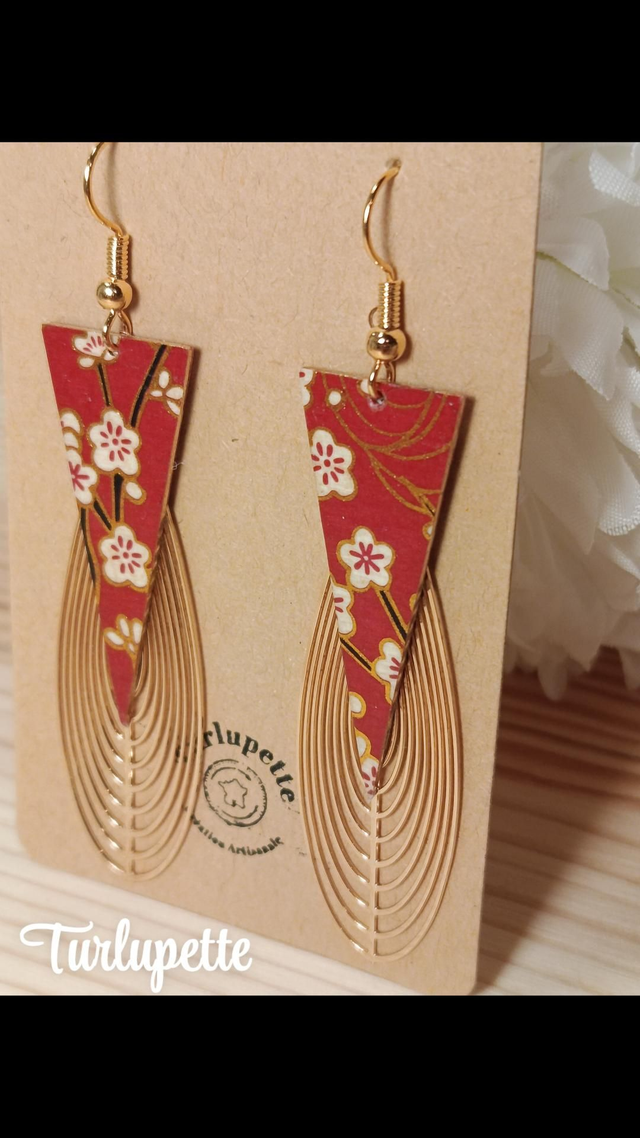 ✨Boucles d’oreilles uniques qui allient élégance et raffinement. Réalisées à la main à partir de papier japonais verni . Une estampe en acier inoxydable pour agrémenté se modèle.