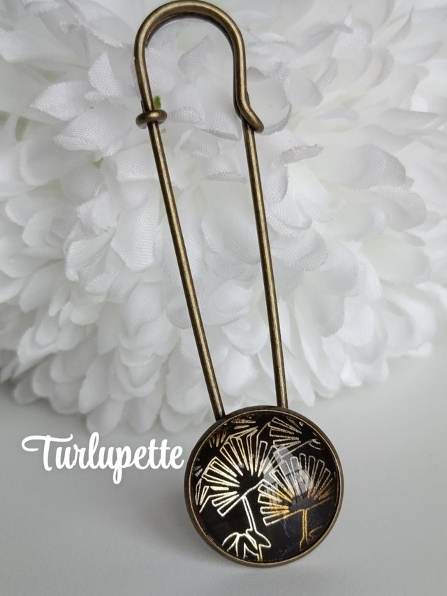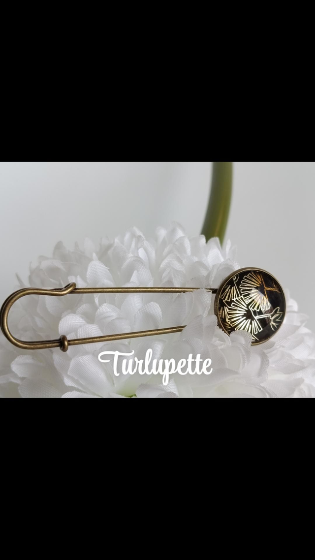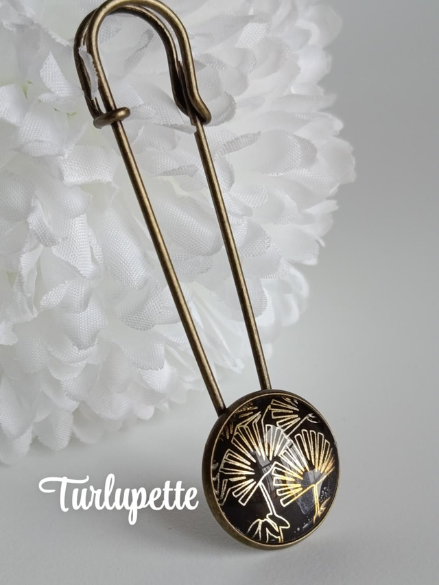 ***Broche épingle et papier japonais protégé par 1 cabochon rond en verre de 2 cm