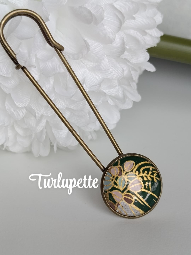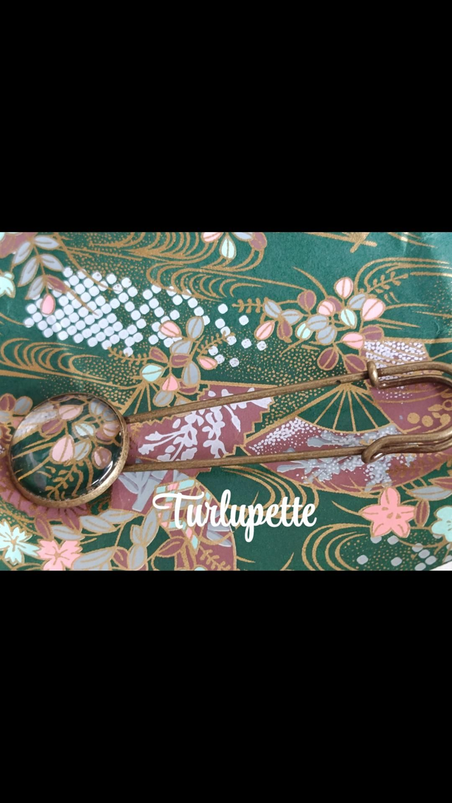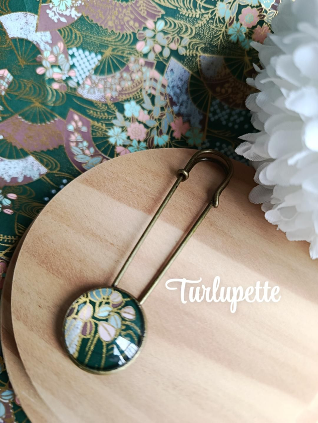 ***Broche épingle et papier japonais protégé par 1 cabochon rond en verre de 2 cm
