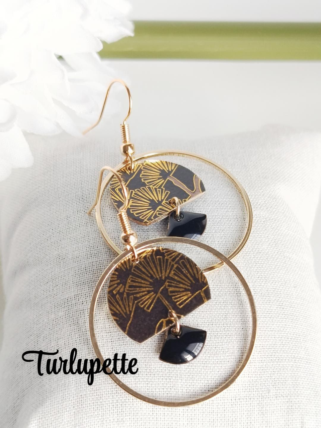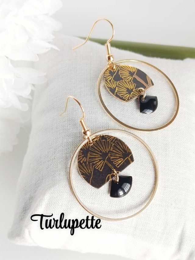 ✨Boucles d’oreilles uniques qui allient élégance et raffinement. Réalisées à la main à partir de papier japonais verni (collection KURO).