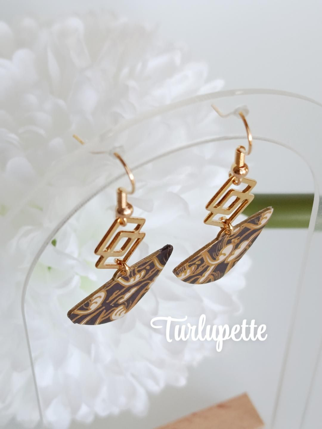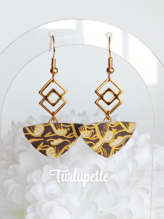 ✨Boucles d’oreilles uniques qui allient élégance et raffinement. Réalisées à la main à partir de papier japonais verni . Une estampe en acier inoxydable pour agrémenté se modèle.