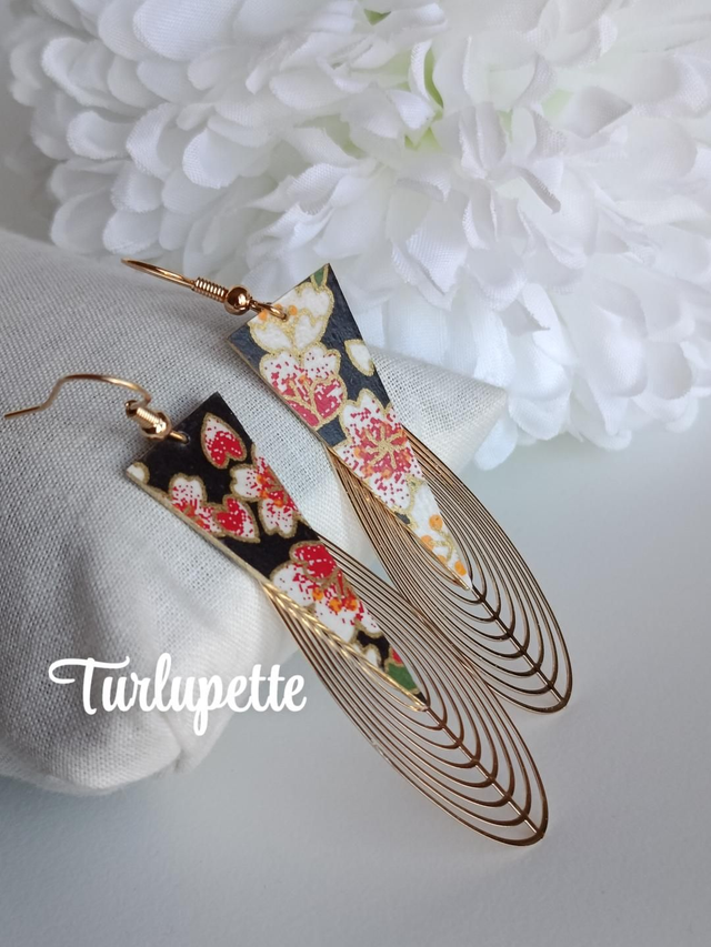 ✨Boucles d’oreilles uniques qui allient élégance et raffinement. Réalisées à la main à partir de papier japonais "collection Hanae" verni .
